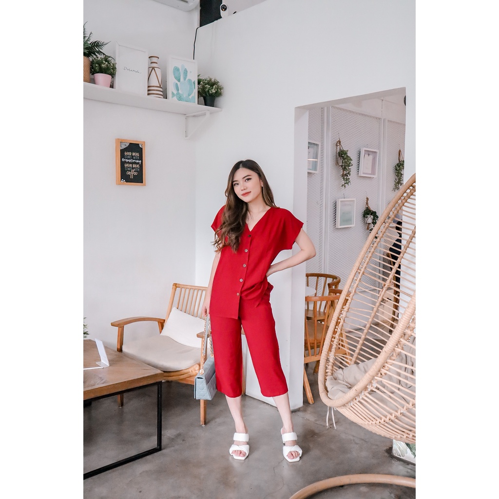 COTTONBELLS CASUAL JUMPSUIT WANITA ALICIA BUTTON SET PANTS (JJ - JS 1722)