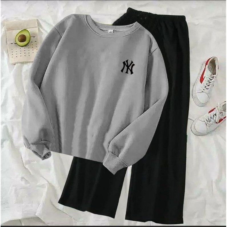 (COD)ST NY / Stelan Kulot Polos Wanita / Stelan Sweater Terlaris / Stelan NY Bordir / Sweater Lengan Panjang&Celana Kulot Viral