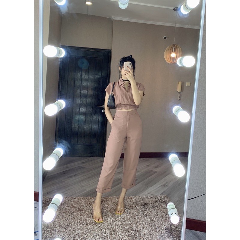 JASMINE SET SETJ310 ONE SET ATASAN CROP KARET DAN CELANA BASIC ADA SELETING DAN KANCING SETJ310