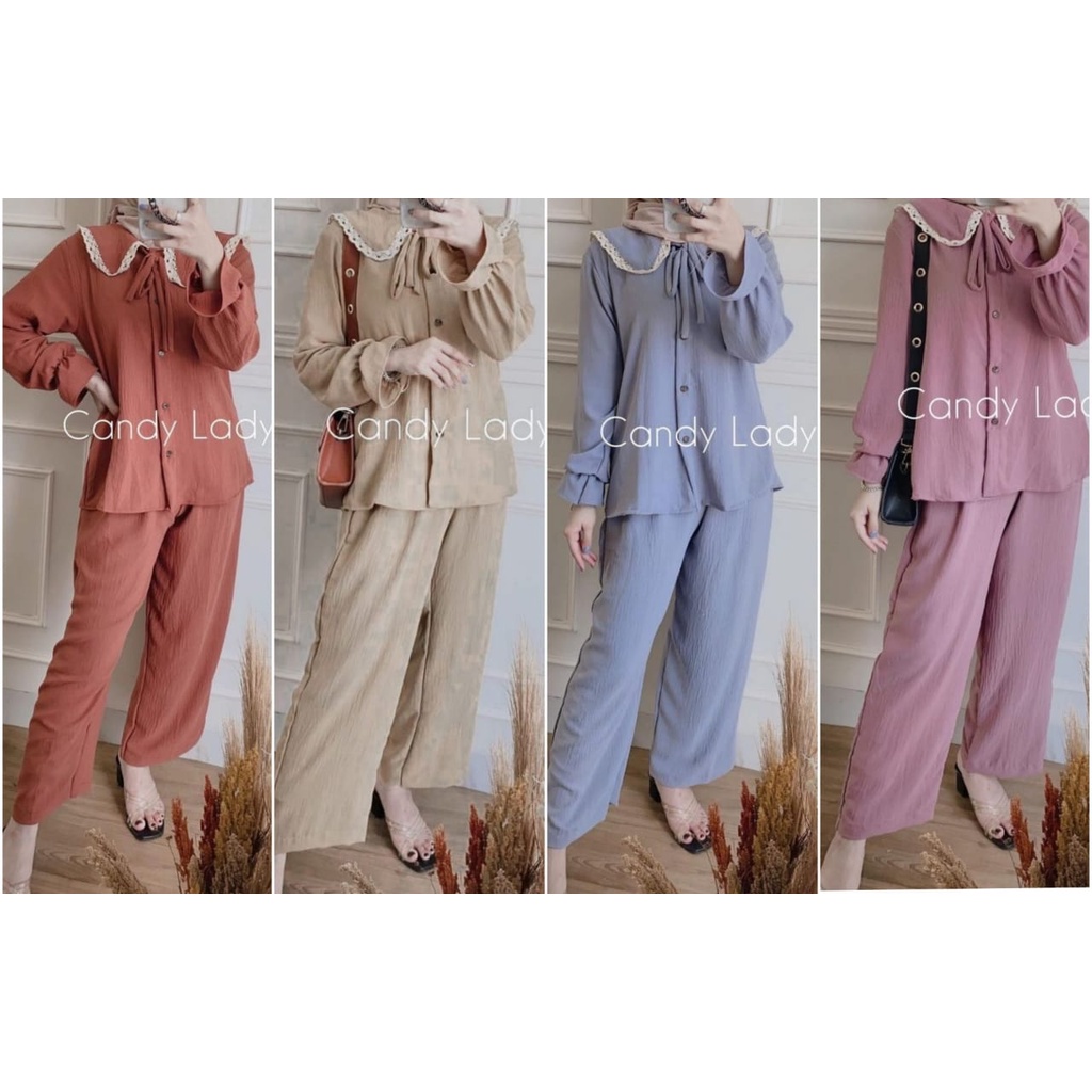 One Set Crinkle Renda I One Set Crinkle Polos Regan I Setcel Korean Style I Setelan Wanita Crinkle Premium