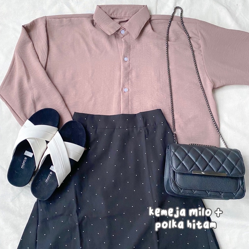 ONESET KEMEJA CRINKLE + ROK POLKADOT FLOWY POLKA SKIRT
