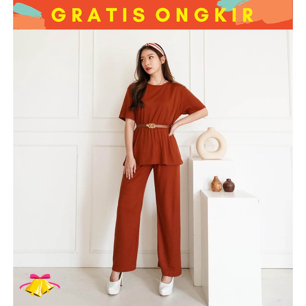 COTTONBELLS CASUAL JUMPSUIT WANITA RAELENE SET PANTS FREE BELT (EO - JS 1868)